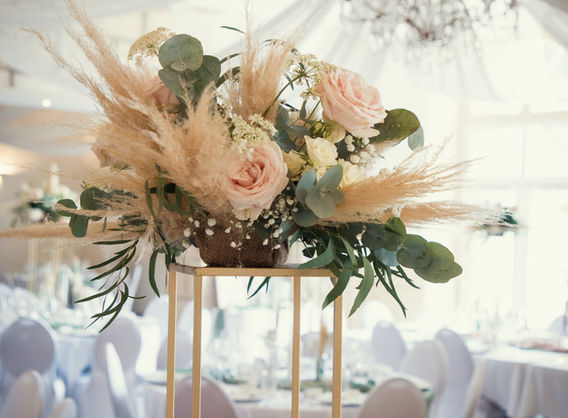 Une décoration signature chez Souffle de Bonheur: du bois, de la nature, beaucoup de fleurs et une touche de terracotta.