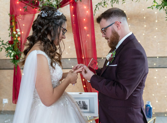 Quand le bordeaux rencontre le doré et que l'amour de deux être est magnifié par une cérémonie laïque personnalisée.